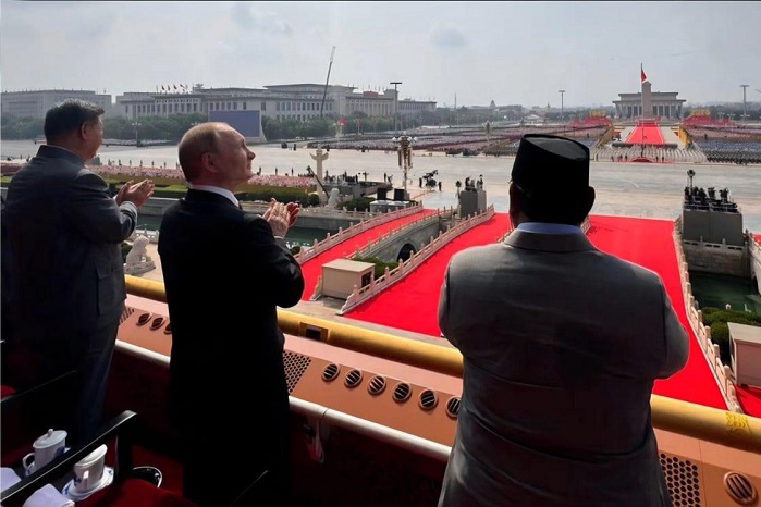 Di panggung kehormatan, ia berdiri sejajar dengan dua tokoh besar dunia, Xi Jinping dan Vladimir Putin, menandai posisi Indonesia yang tak sekadar hadir, tetapi diperhitungkan.